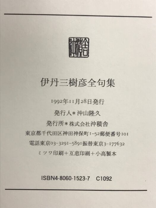 タイトル:伊丹三樹彦全句集 沖積舎 伊丹三樹彦