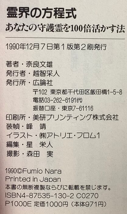 タイトル:霊界の方程式 あなたの守護霊を100倍活かす方法 広論社 奈良 文雄