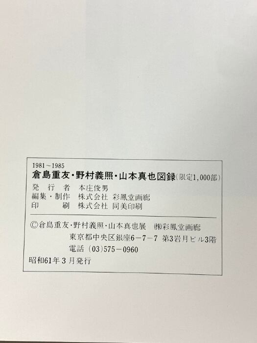 図録 倉島重友・野村義照・山本真也 1981-1985 本庄俊男