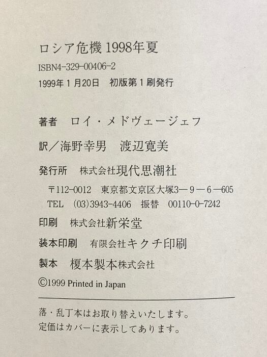 ロシア危機1998年夏 現代思潮社 ロイ メドヴェージェフ