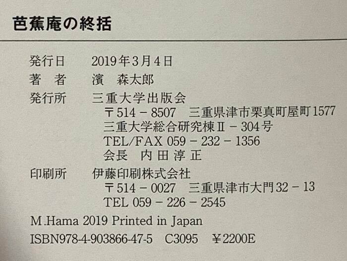 芭蕉庵の終括 三重大学出版会 濱 森太郎