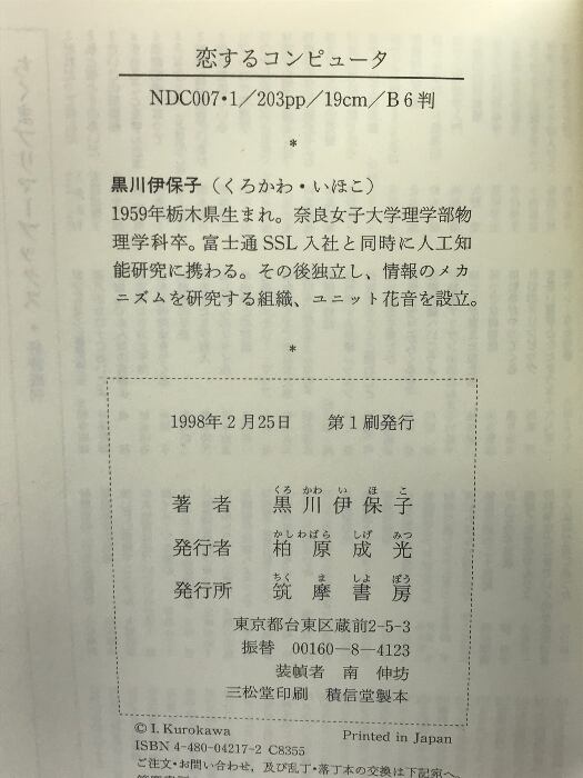 恋するコンピュータ (ちくまプリマーブックス 117) 筑摩書房 黒川 伊保子