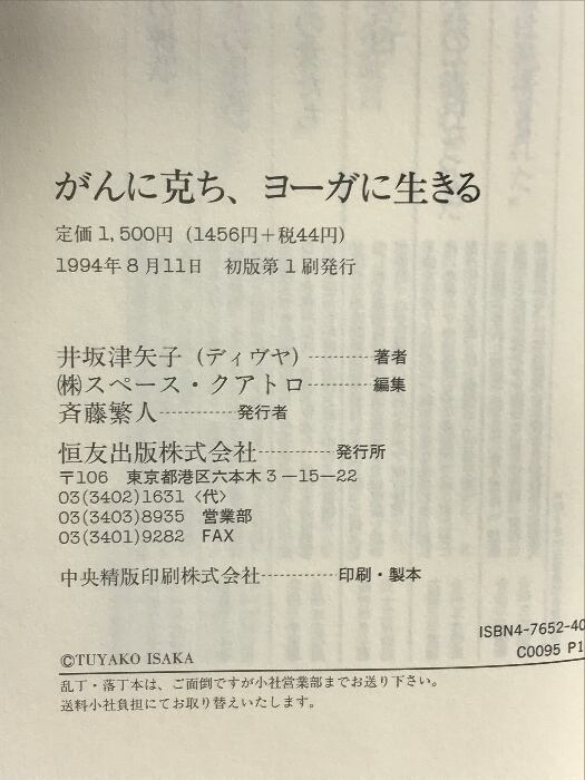 タイトル:がんに克ち、ヨーガに生きる: 神秘の力で、人生のハードルを超えた私 恒友出版 井坂 津矢子