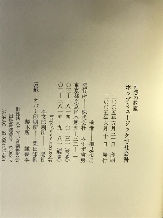 理想の教室 ポップミュージックで社会科 みすず書房 細見 和之
