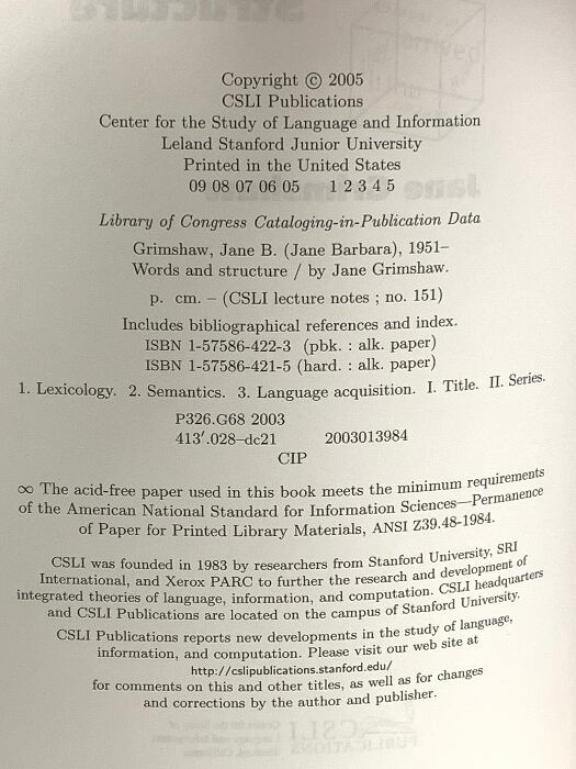 洋書 Words and Structure (Csli Lecture Notes 151) Stanford Univ Center for the Study Jane B.Grimshaw