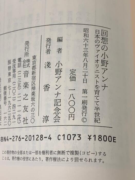 回想の小野アンナ 音楽之友社 小野アンナ記念会