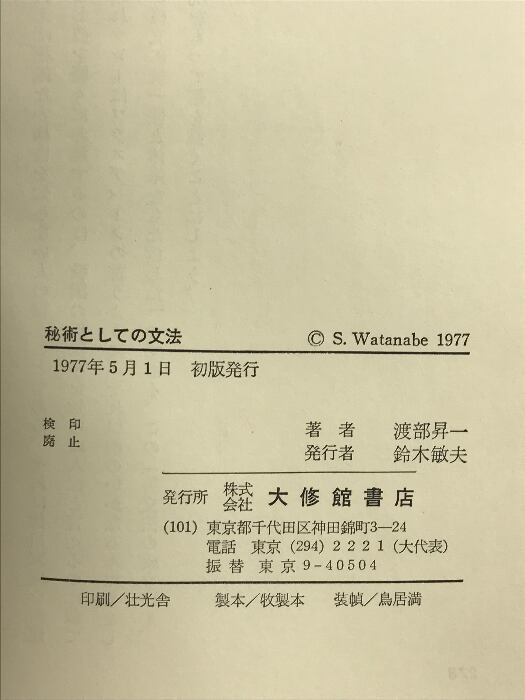 タイトル:秘術としての文法 大修館書店 渡部昇一