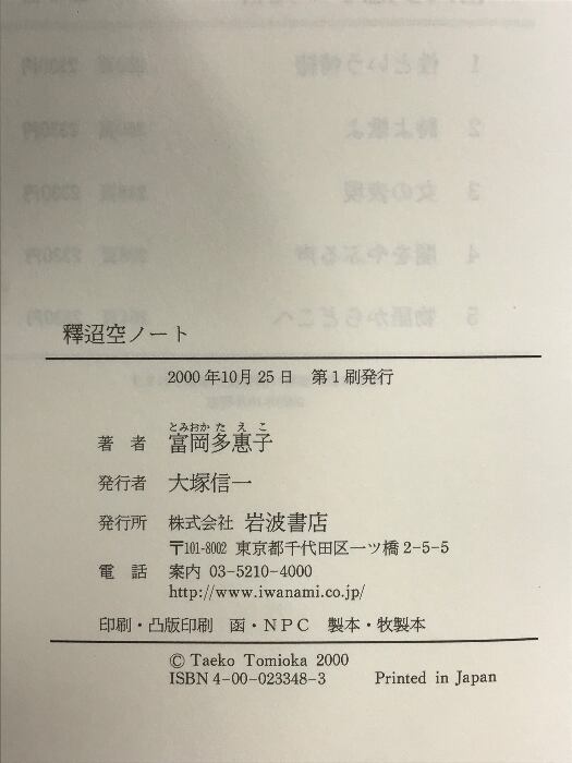 タイトル:釋迢空ノート 岩波書店 富岡 多惠子