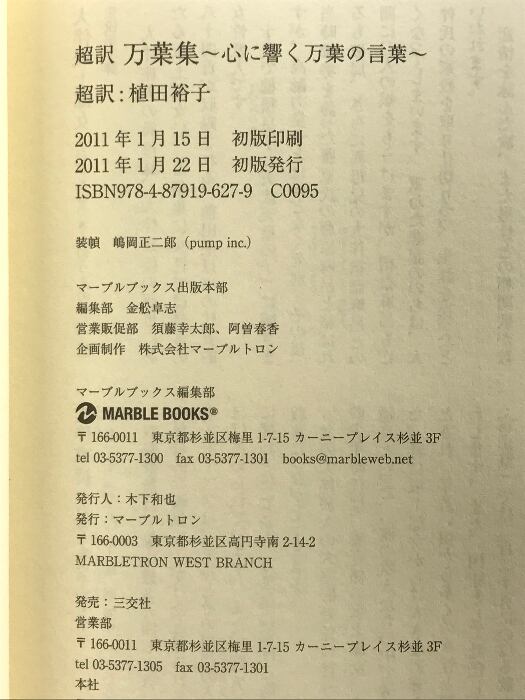 タイトル:超訳 万葉集: 心に響く“万葉”の言葉 (マーブルブックス) マーブルトロン 植田 裕子