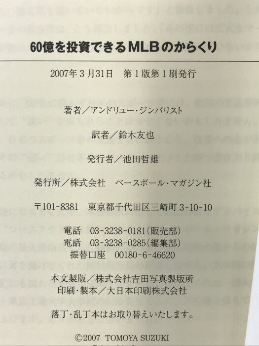 タイトル:60億を投資できるMLBのからくり ベースボール・マガジン社 アンドリュー ジンバリスト