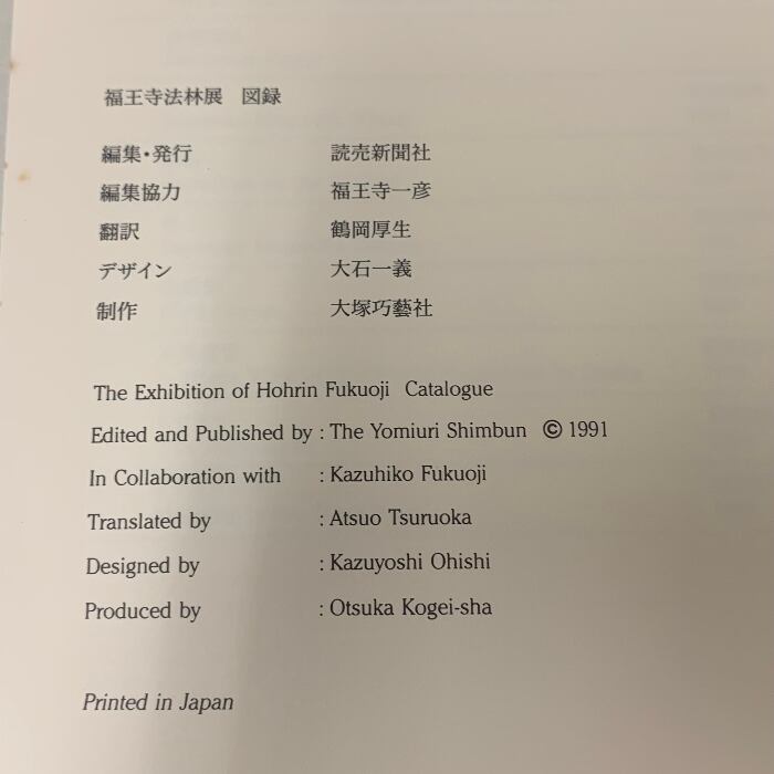 図録 福王寺法林展 The Exhidition of Hourin FUKUOJI 読売新聞社 1991