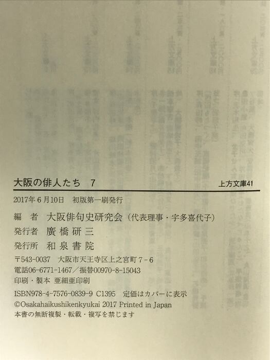 タイトル:大阪の俳人たち7 (上方文庫 41 大阪俳句史研究会叢書)