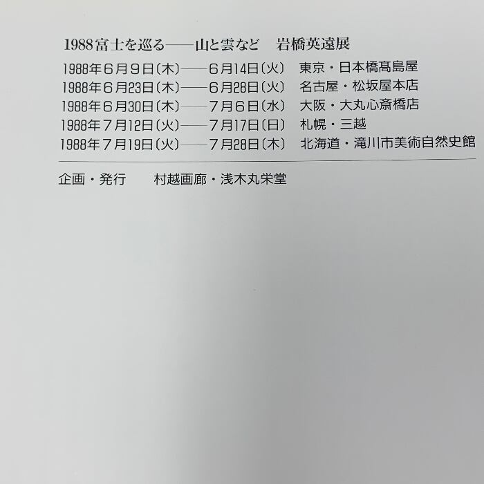 図録 1988 富士を巡る 山と雲など 岩橋英遠展 村越画廊・浅木丸栄堂