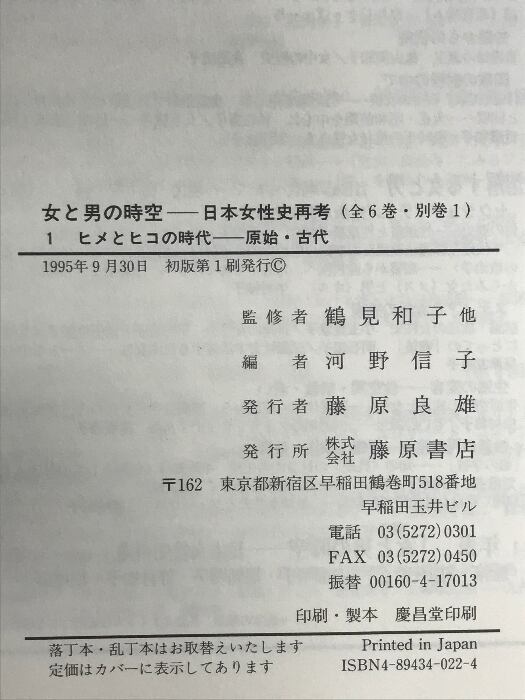 タイトル:女と男の時空 1: 日本女性史再考 藤原書店 河野 信子