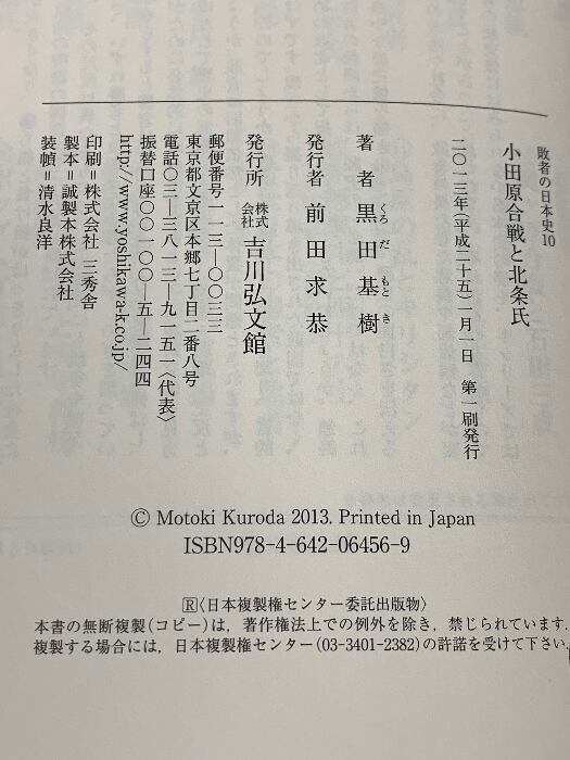 タイトル:小田原合戦と北条氏 (敗者の日本史 10) 吉川弘文館 黒田 基樹