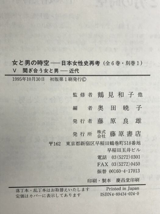 タイトル:女と男の時空 (5) 日本女性史再考 藤原書店 奥田 暁子