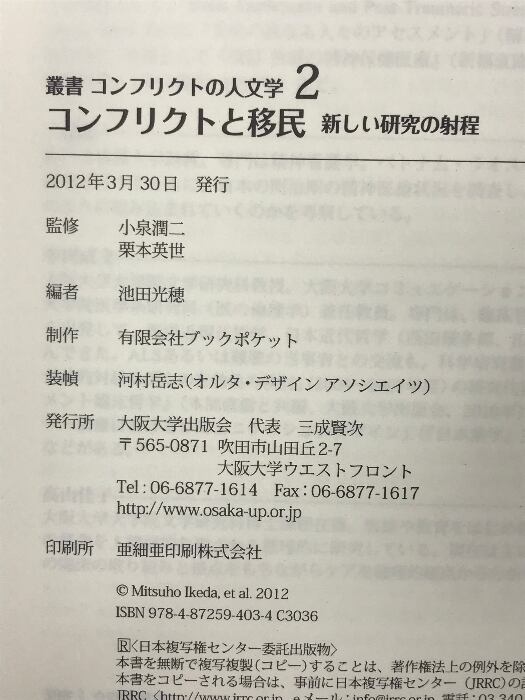 タイトル:コンフリクトと移民-新しい研究の射程 (叢書コンフリクトの人文学2) (叢書コンフリクトの人文学 2) 大阪大学出版会 池田光穂