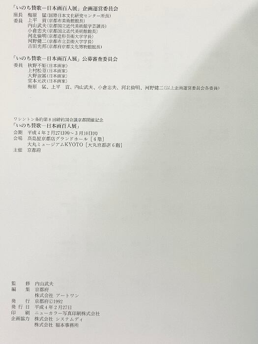 タイトル:図録 いのちの賛歌 日本画100人展 1992 京都府