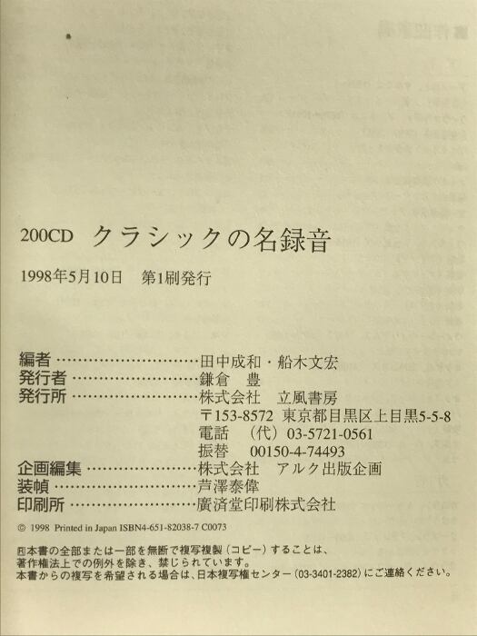 タイトル:200CDクラシックの名録音 立風書房 田中 成和