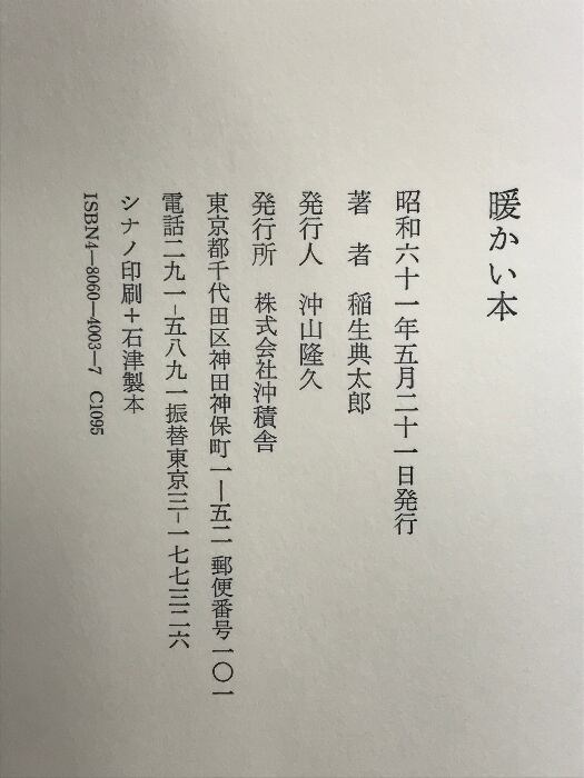 タイトル:暖かい本 沖積舎 稲生 典太郎