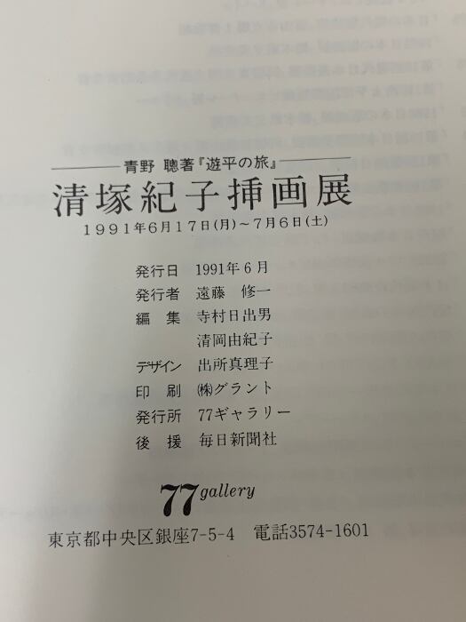 タイトル:図録 清塚紀子挿絵展 青野 聡著 遊平の旅 77gallery 毎日新聞社 1991