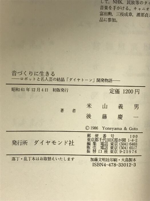タイトル:音づくりに生きる: ロボットと名人芸の結晶ダイヤトーン開発物語 ダイヤモンド社 米山 義男