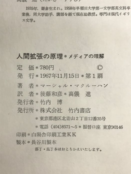 人間拡張の原理 竹内書店 マーシャル・マクルーハン