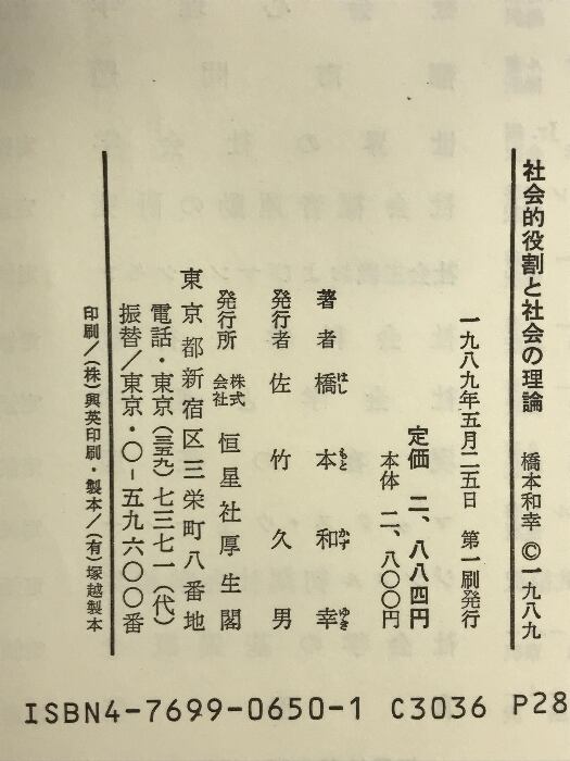 社会的役割と社会の理論 (社会学叢書) 恒星社厚生閣 橋本 和幸