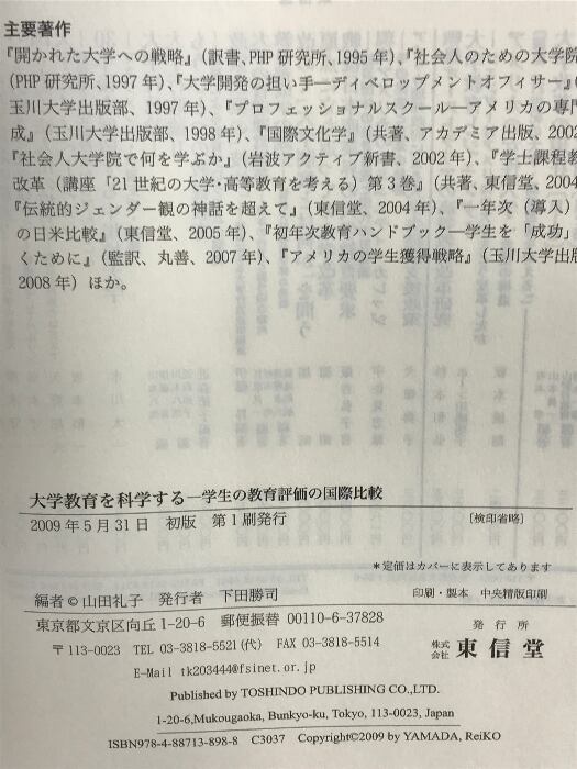 タイトル:大学教育を科学する:学生の教育評価の国際比較 東信堂 山田 礼子
