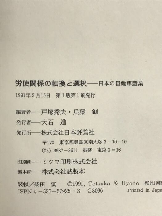 タイトル:労使関係の転換と選択: 日本の自動車産業 日本評論社 戸塚秀夫