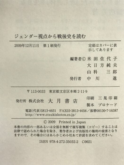タイトル:ジェンダ-視点から戦後史を読む 大月書店 浅野 富美枝