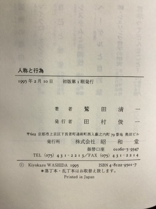タイトル:人称と行為 昭和堂 鷲田 清一