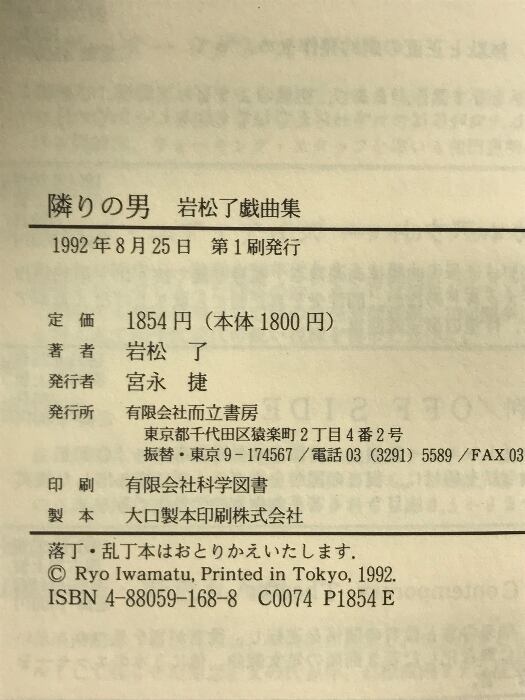 隣りの男 而立書房 岩松 了