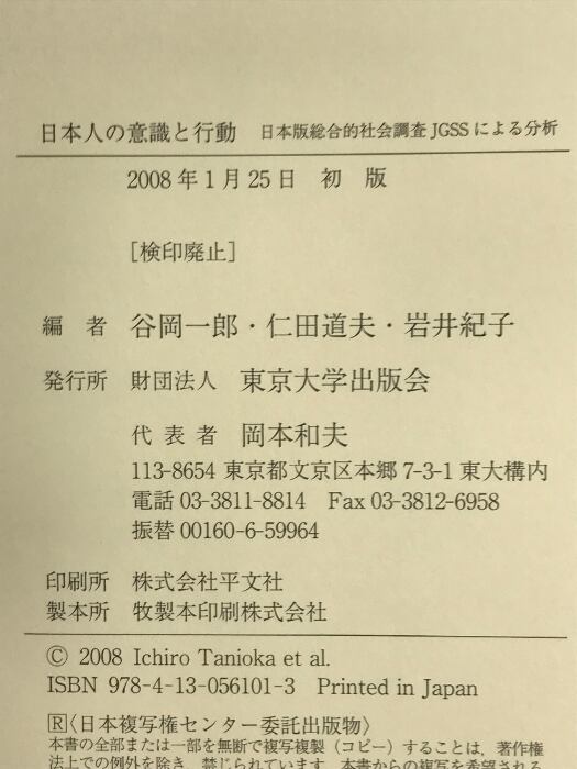 タイトル:日本人の意識と行動: 日本版総合的社会調査JGSSによる分析 東京大学出版会 谷岡 一郎