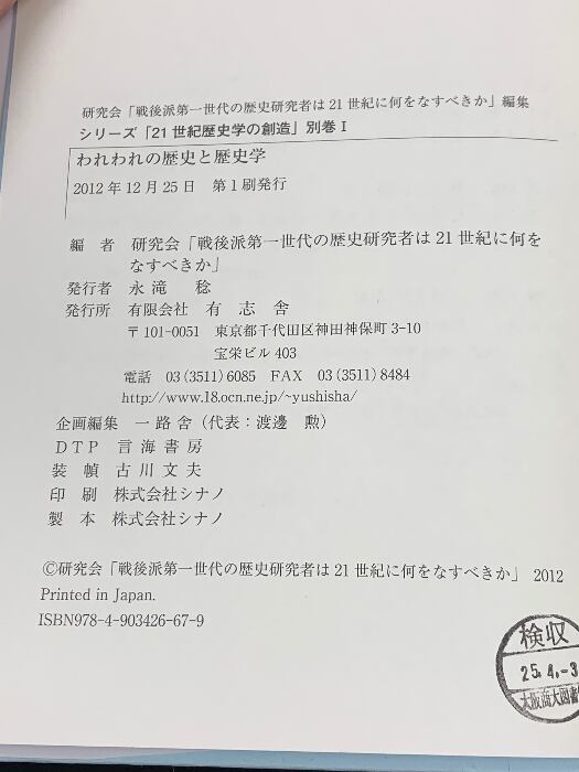 タイトル:21世紀歴史学の創造 別巻I われわれの歴史と歴史学 有志舎 研究会「戦後派第一世代の歴史研究者は21世紀に何をなすべきか」編