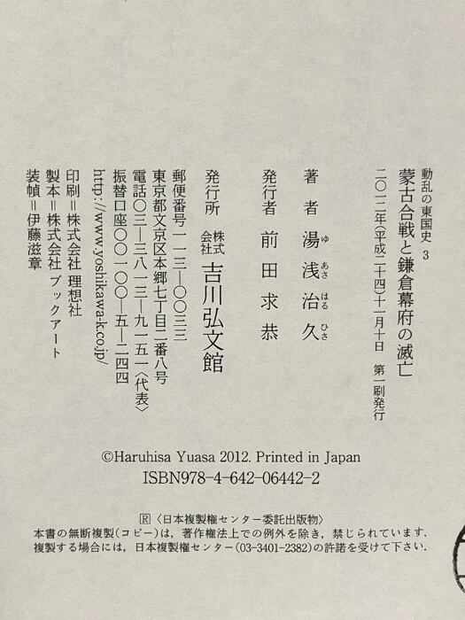 タイトル:蒙古合戦と鎌倉幕府の滅亡 (動乱の東国史 3) 吉川弘文館 湯浅 治久
