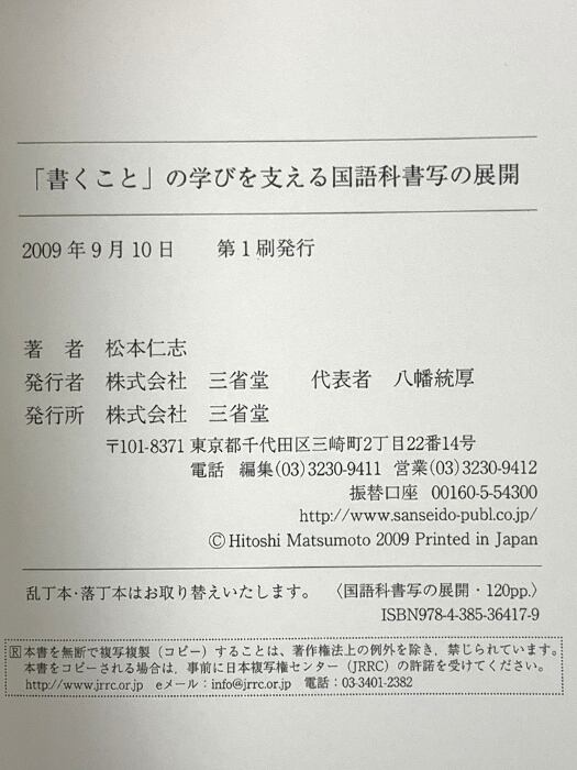 「書くこと」の学びを支える国語科書写の展開 三省堂 松本 仁志