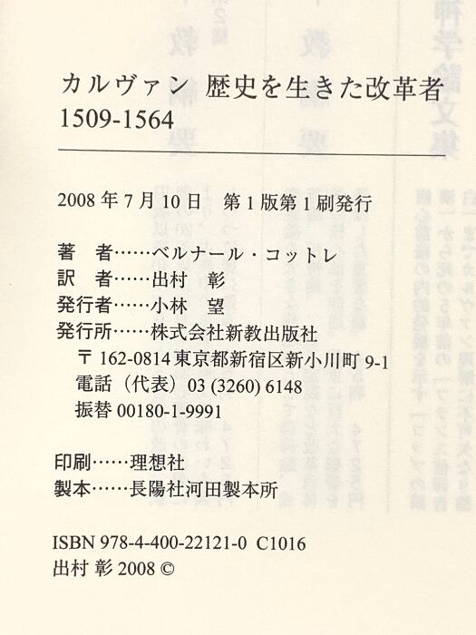 タイトル:カルヴァン歴史を生きた改革者 1509-1564 新教出版社 ベルナール・コットレ