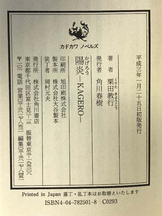 陽炎: KAGERO (カドカワノベルズ 125-1) KADOKAWA 栗田 教行