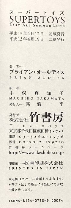 スーパートイズ 竹書房 ブライアン・オールディス