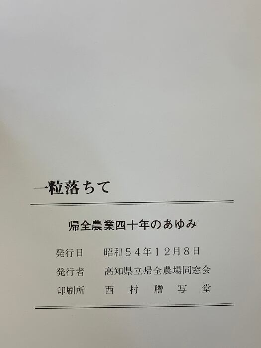 帰全農場四十年のあゆみ 一粒おちて 昭和54年 高知県立帰全農場同窓会