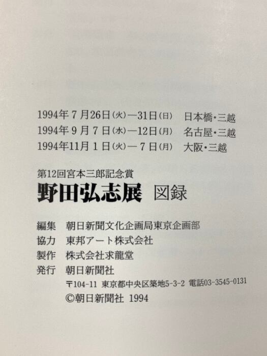図録 野田弘志展 1994 第2回宮本三郎記念賞 (財)美術文化振興協会・朝日新聞社