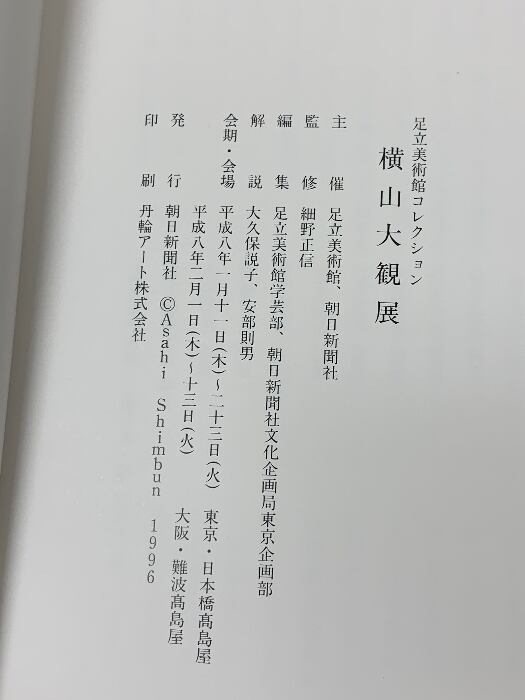 図録 横山大観展 足立美術館コレクション 足立美術館 朝日新聞社 1996