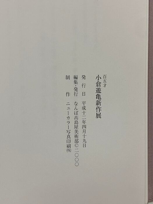 図録 百五才 小倉游亀 新作展 2000 難波高島屋美術部
