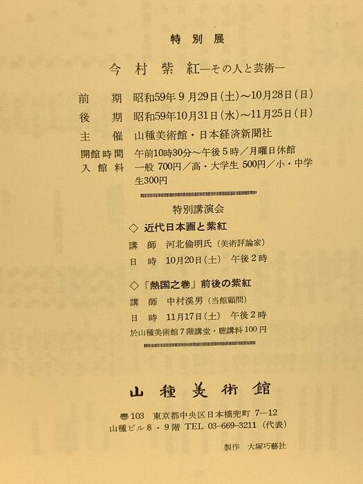 図録 今村紫紅 その人と芸術 昭和59年 山種美術館