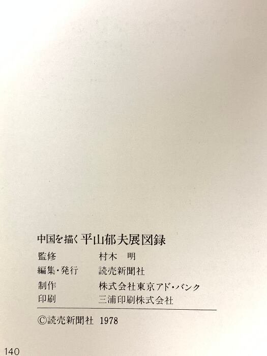 タイトル:図録 中国を描く 平山郁夫展 チベット訪問記念 1978 読売新聞社