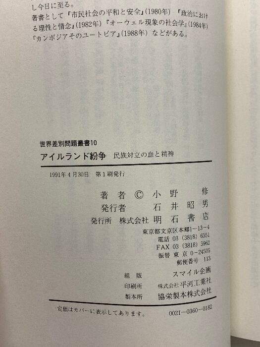 アイルランド紛争 (世界差別問題叢書) (世界差別問題叢書 10) 明石書店 小野 修