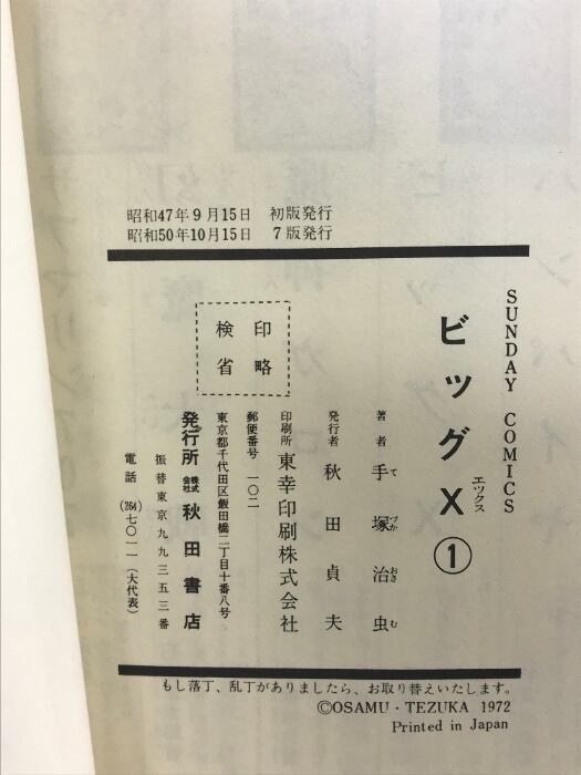 タイトル:ビッグX(ビッグエックス)SF COMICS(1~4巻/全4冊セット)秋田書店 手塚治虫 (昭和50年~平成元年)