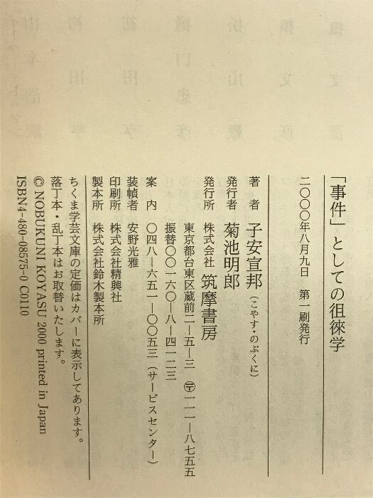 タイトル:事件としての徂徠学 (ちくま学芸文庫 コ 16-1) 筑摩書房 子安 宣邦