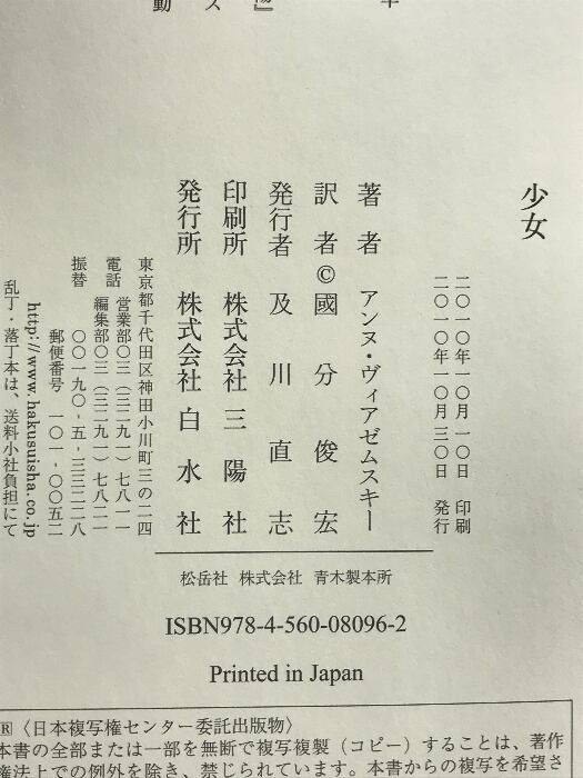 タイトル:少女 白水社 アンヌ ヴィアゼムスキー